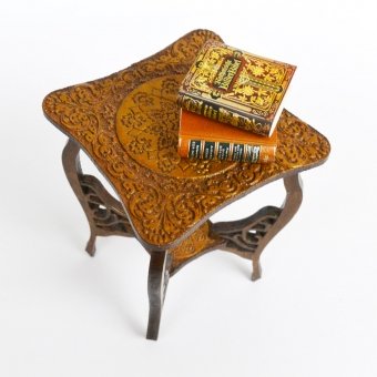 Deze tafel is een zogenaamde wijn- of lamptafel. Het ontwerp van de tafel dateert uit circa 1890 en heeft Victoriaanse invloeden.
